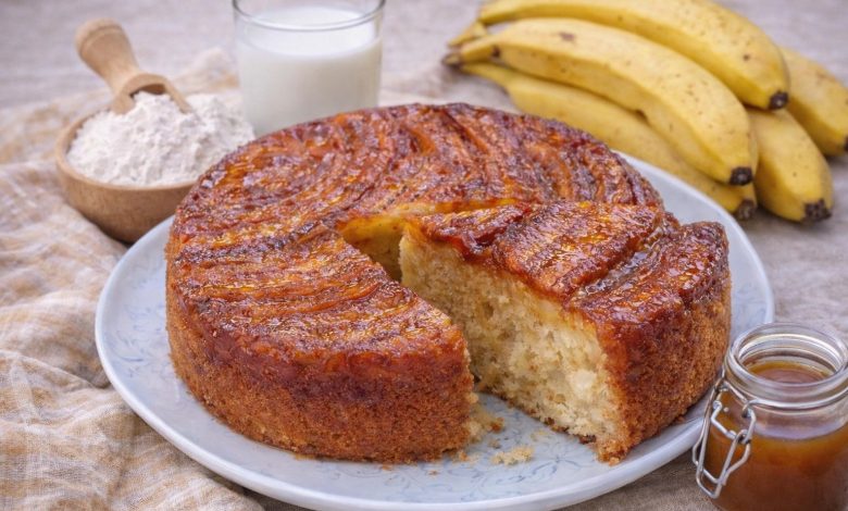 Este é aquele bolo caseiro clássico que sai sempre bem: húmido por dentro, aromático e com uma cobertura de banana caramelizada absolutamente irresistível.