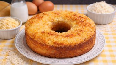 Pre-aquecer o forno a 180º. Untar e polvilhar com farinha uma forma redonda sem buraco.