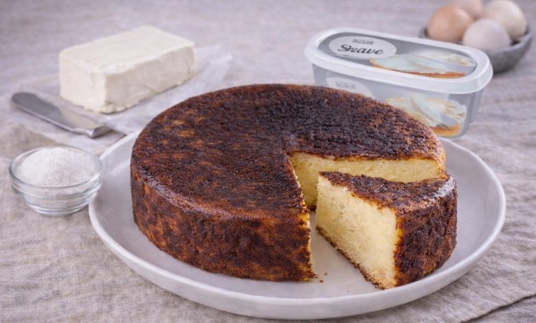 Por fim, retire do forno, deixe arrefecer um pouco e só depois desenforme. Sirva em fatias e desfrute de um bolo macio, aromático e muito delicado.