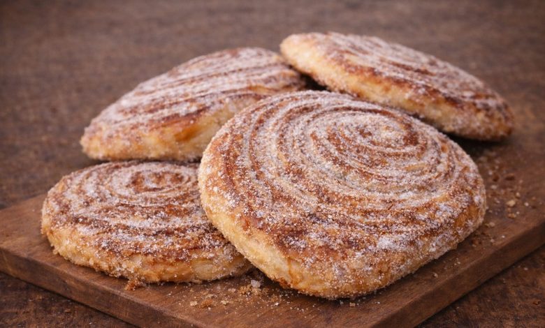 Ingredientes: 1 kg de farinha tipo 55; 50 g de fermento de padeiro; 250 g de banha para a massa + 150 g de banha para enrolar; 6 ovos; 200 g de açúcar misturado com 1 colher de chá de canela; 0,5 dl de aguardente; açúcar q.b. para polvilhar.