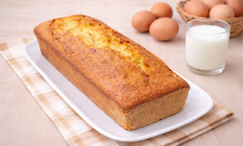 Depois disso, unte uma forma de bolo inglês (30 × 10 cm) com manteiga e polvilhe com farinha. Verta a massa para a forma e leve ao forno previamente aquecido: em forno ventilado a 170 °C durante cerca de 45 minutos ou, em alternativa, em forno estático a 180 °C pelo mesmo tempo.