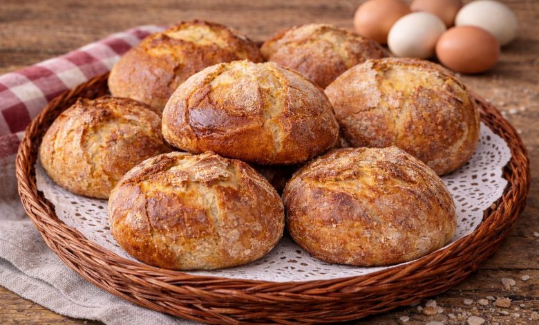 Com a ajuda de uma colher de sopa, disponha pequenos montes de massa em tabuleiros previamente untados e polvilhados com farinha. Pincele cada bolinho com gema de ovo e polvilhe com uma colher de café de açúcar.