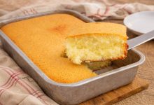 Leve ao forno durante 15 minutos, depois reduza a temperatura para os 170ºC e deixe mais 10 minutos. Retire, deixe arrefecer, barre as laterais com o creme de pasteleiro, polvilhe com açúcar em pó e sirva.