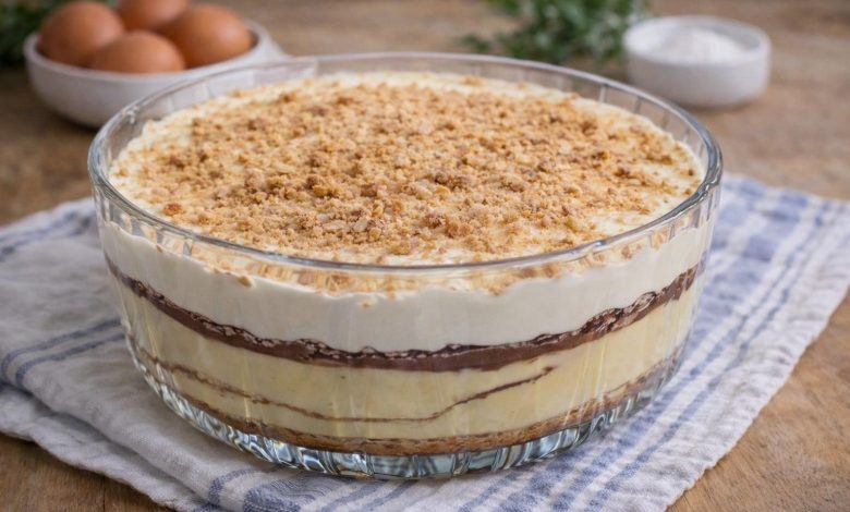 8 gemas, 44 g de amido de milho, 180 g de açúcar, 500 ml de leite, 10 g de açúcar baunilhado (ou baunilha), 20 g de manteiga, 1 pitada de sal, casca de limão, 1 pau de canela, bolacha Maria q.b., café forte q.b., licor q.b. (opcional), natas para bater, raspas de limão e canela em pó para finalizar.