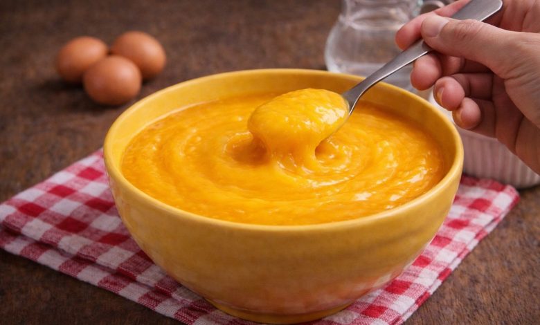 Retire do lume, transfira para um recipiente e cubra imediatamente com película aderente, colocando-a em contacto direto com a superfície do doce para evitar a formação de crosta.