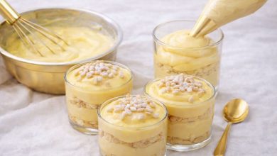 Numa taça, colocar uma camada de bolacha Maria e depois um de natas. Repetir. Cobrir com o doce de ovos, bem frio.