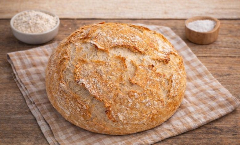 Preparação: Comece por misturar numa tigela grande a farinha, o fermento e o sal. De seguida, adicione toda a água de uma só vez e mexa energicamente com uma espátula até obter uma massa homogénea, ainda que bastante húmida. Cubra a tigela com película aderente e deixe fermentar durante 12 a 18 horas, sem mexer, num local protegido de correntes de ar e variações de temperatura, pois este pão não leva sova e o glúten forma-se naturalmente durante o repouso. Passado esse tempo, a massa estará cheia de bolhas, muito macia e pegajosa. Polvilhe bem a bancada com farinha, vire a massa cuidadosamente e dobre-a sobre si mesma de fora para dentro, em quatro lados. Com a ajuda de uma espátula, modele uma bola e deixe-a descansar cerca de 30 minutos, enquanto o forno pré-aquece. Entretanto, coloque uma panela com tampa dentro do forno e aqueça a 230 ºC. Retire a panela com cuidado, polvilhe o fundo com farinha integral ou unte com azeite, coloque a massa dentro, tape e leve ao forno durante 25 minutos. Depois desse tempo, retire a tampa e deixe assar mais 20 minutos, ou até o pão ficar bem dourado e com crosta firme. Retire do forno, transfira para uma grelha e deixe arrefecer completamente antes de cortar.
