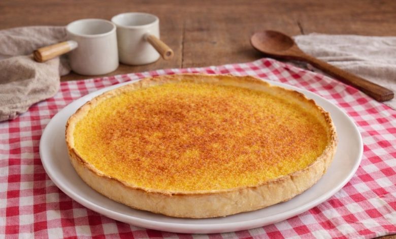 Passado o tempo de repouso, unte uma tarteira alta com manteiga e polvilhe com farinha. Estenda a massa muito fina, quase transparente, e forre completamente a tarteira, incluindo os bordos. De seguida, verta o recheio e leve ao forno pré-aquecido a 180 ºC durante cerca de 30 minutos.